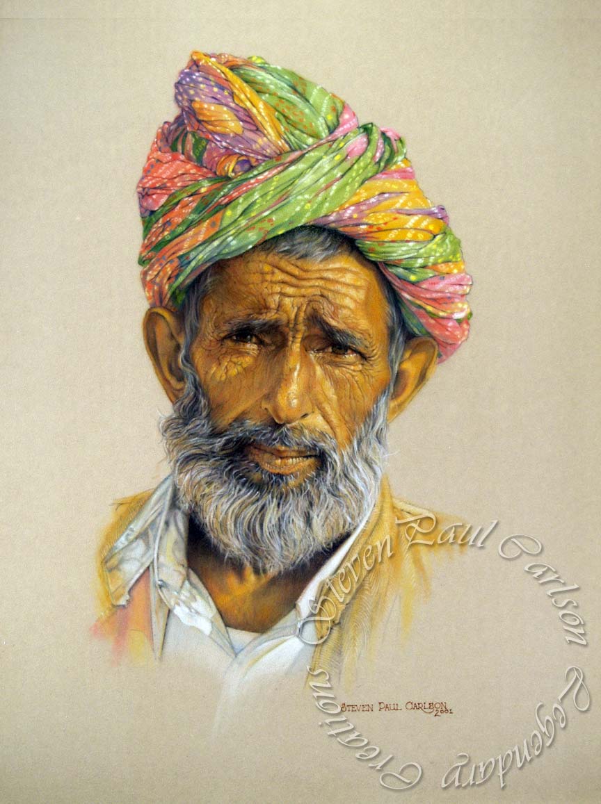 One can see and feel the history etched into this man’s face and antiquity its-self reflecting in his eyes. I had great fun painting the bright colored head cloth with its intricate patterns, wrinkles and folds juxtaposed with his face and the similar intricate patterns. This is one of my all time favorite portraits.